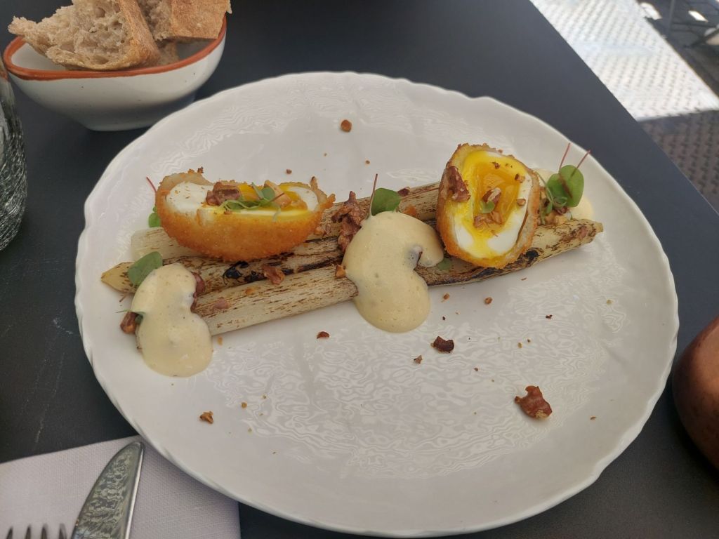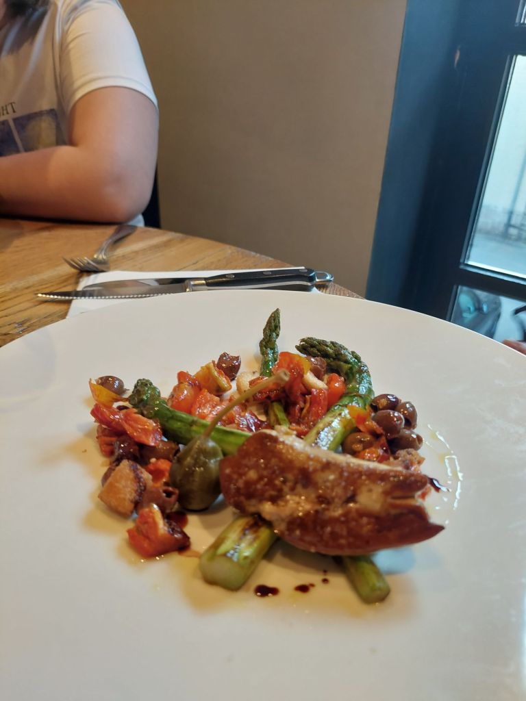 - Le Bistro Camélia: dernière découverte en date. Envie de se détendre après des semaines stressantes, envie de sortir des sentiers battus. On se pose à la terrasse de ce nouveau resto au coin de la Place Chanoine Descamps que j’aime beaucoup d’autant plus que j’y ai vécu pendant plus de 5 ans. Au Bistrot Camélia, 3 entrées,3 plats, 3 desserts. La carte tient sur une page. On se laisse tenter par une entrée qu’on se partage, des asperges avec un œuf molet frit suivi d’un carré de veau cuit en basse température avec des fèves des marais. Le vin conseillé s’allie parfaitement avec le plat. On est loin du repas diététique mais on est très proche du sans-faute. Adresse plus que validée